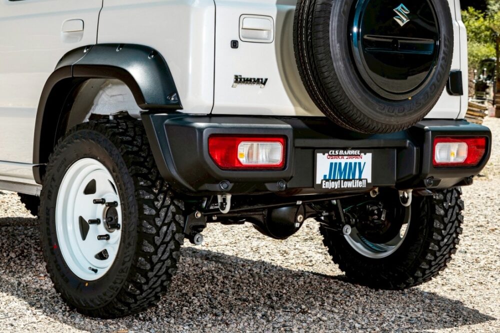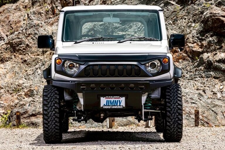 CLS-UPシリーズの最新作、ジムニー ノマドはいかがだっただろう? RHINOバンパー(6万6000円)とオーバーフェンダー(11万円)に加え、大径サイズ「225/75-16」タイヤが履ける1.5インチアップのアゲバネ(4万1800円)という最小限のアイテムを取り付けるだけで、ジープ・ラングラーを彷彿とさせるアゲ系スタイルが即効で手に入れられる。