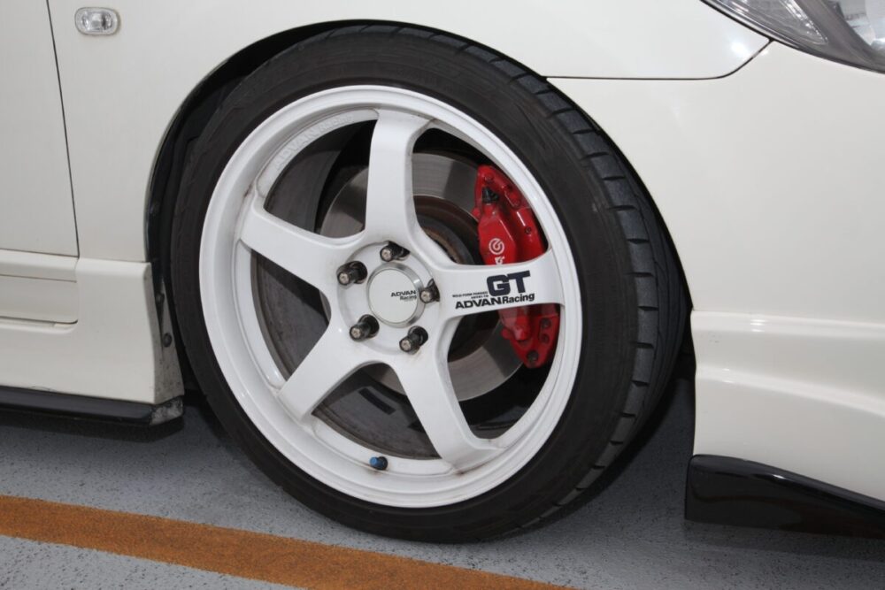 ホイールはADVAN RacingのGTをチョイス。信頼の性能はもちろんのこと、車体と同色系とすることで、高い統一感とスポーティーさを実現した。