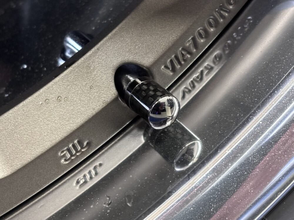 あと、オカルトパーツの類ですが、ホイールのバルブキャップをSEVに交換しています。どうやらタイヤまわりを整流してくれるパーツらしく、単体では効果を感じませんでしたが、SEVの「BODY ON S」と組み合わせることで乗り心地がかなり変わりました。こちらは、ボディのたわみを早く収縮させる働きがあるパーツだそうです」