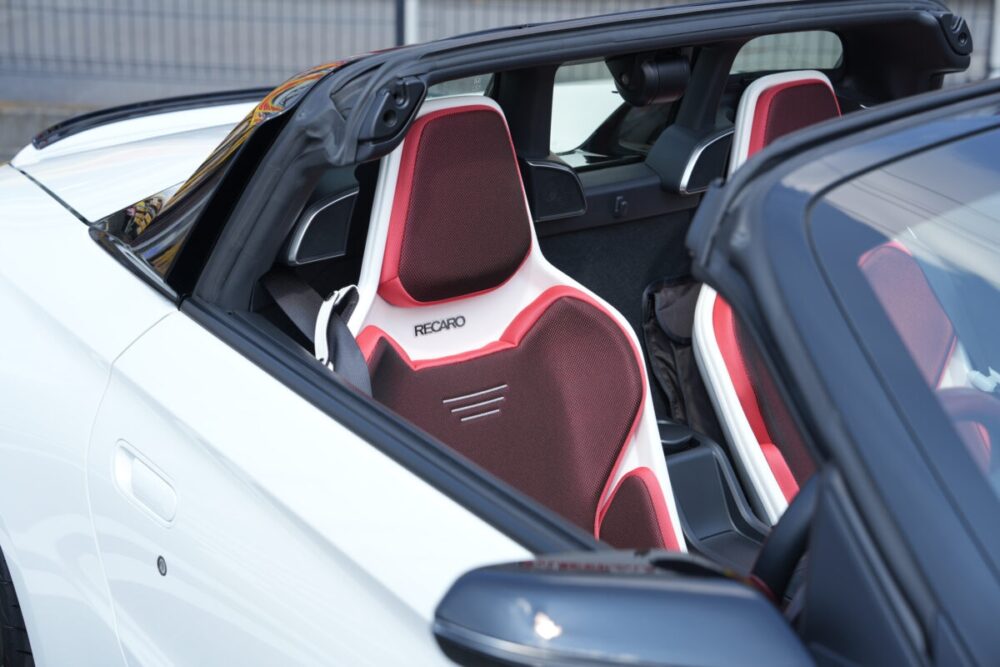 「内緒」とのことで想像しかできないが、ミッドシップをベースにさらにキビキビと楽しく快適に走れるカスタムがポイントだろう。走る・曲がる・止まるの3大要素だ。