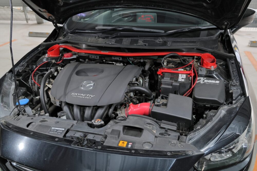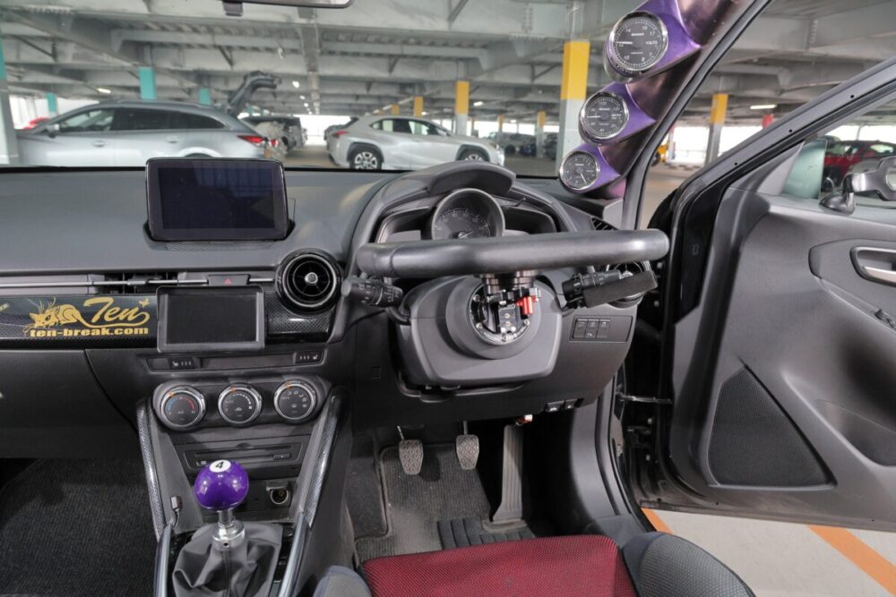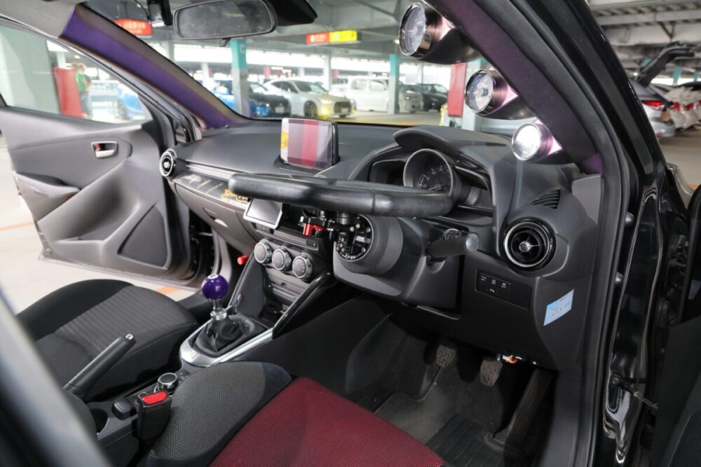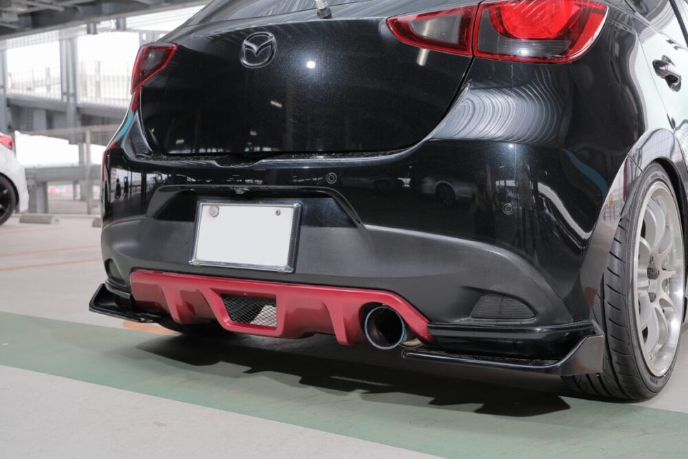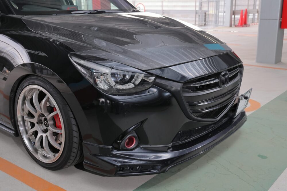 「大衆車をカスタムカーにというコンセプトでいじってきました」と話してくれたSIAさん。全体をブラックでシックにまとめられたデミオからは、ノーマルとは明らかに違う雰囲気が漂っていました。