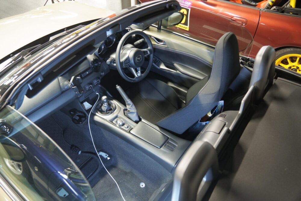 「軽量化のためにナビシートを取り外しています。車重1tを切りますので、メチャ軽いです」