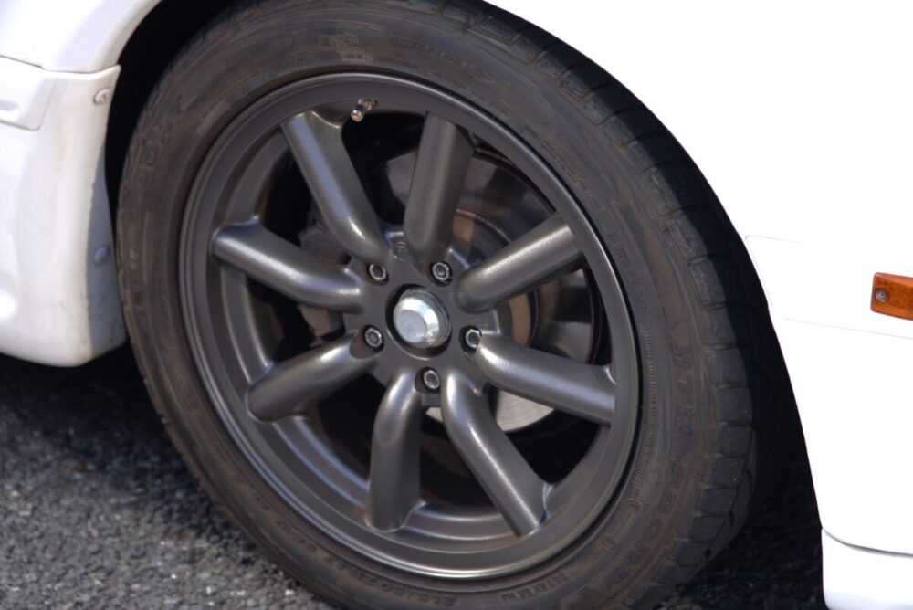 「ナイトスポーツ アラゴスタ車高調、ワタナベホイール(前後17インチ/フロント215・リヤ235)。