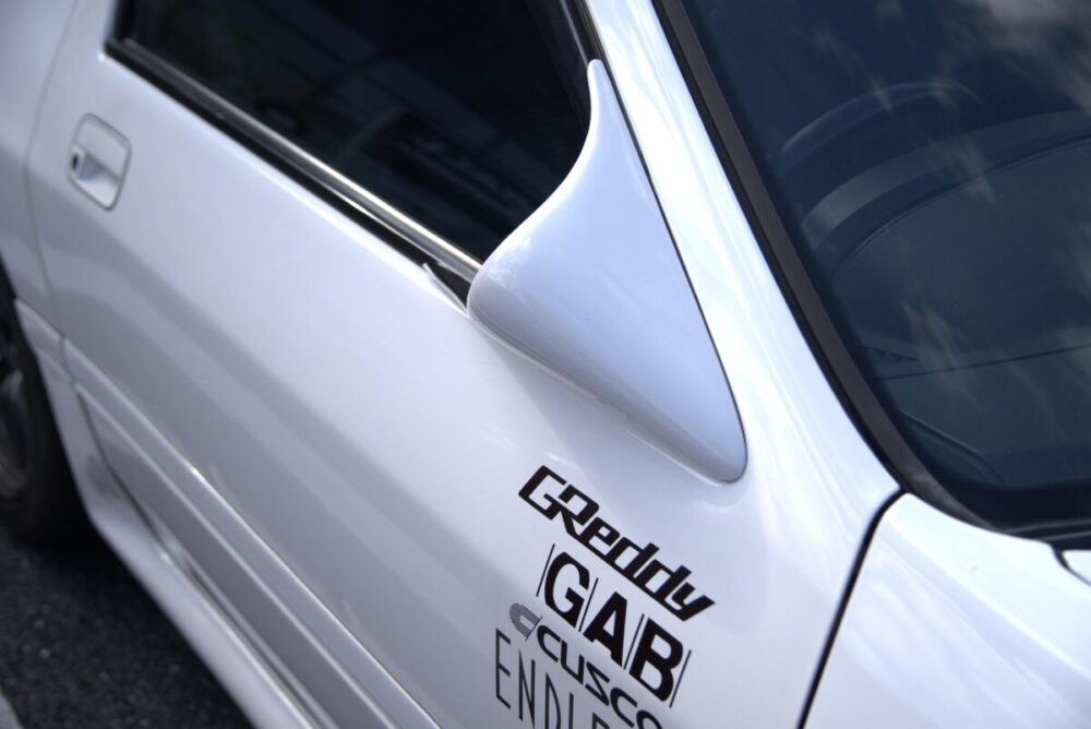 「リヤスポイラーは純正、リップスポイラーはチャージスピード。クスコのオフセットナンバーステーにRE雨宮エアロミラーと、高橋涼介仕様にしています」