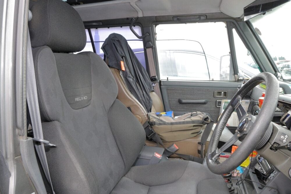 レカロシートは電動のヒートシートで快適。乗り心地も万全だ。長距離ドライブもしていて、北海道や九州まで行くこともあるそうだ。