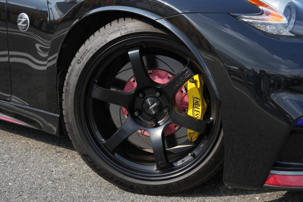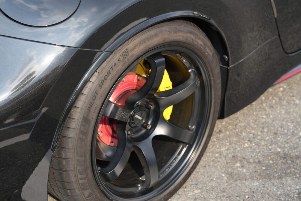 ブレーキキャリパー(止まります)とブレーキに重きを置いているところが素晴らしい。ノーマルでもパワーは十分と言える車両なので、さらなる性能アップにブレーキは欠かせないポイントなのだ。