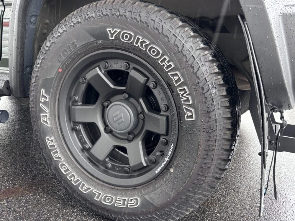「ジムニーシエラのホイールカスタムは16インチが定番です。でも他と同じことをやりたくなかったし、タイヤのファット感が出したかったので15インチにしています。ホイールはMIDのナイトロパワー。タイヤはジオランダーのA/T。ブロックタイヤですがロードノイズが少なくて快適ですよ」