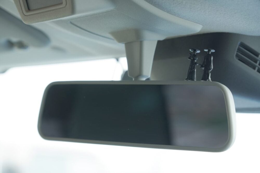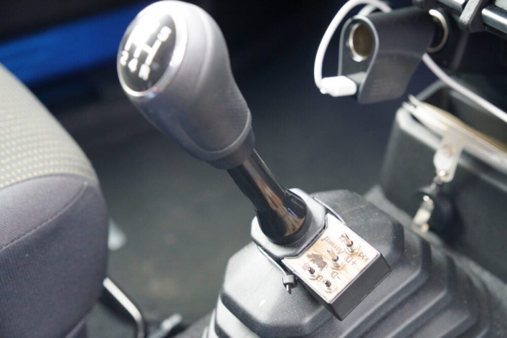 「シフトノブ近くに作った、ステアリングスイッチのボタンをはじめ、DIYで車内をカスタムしたり、装飾しています」