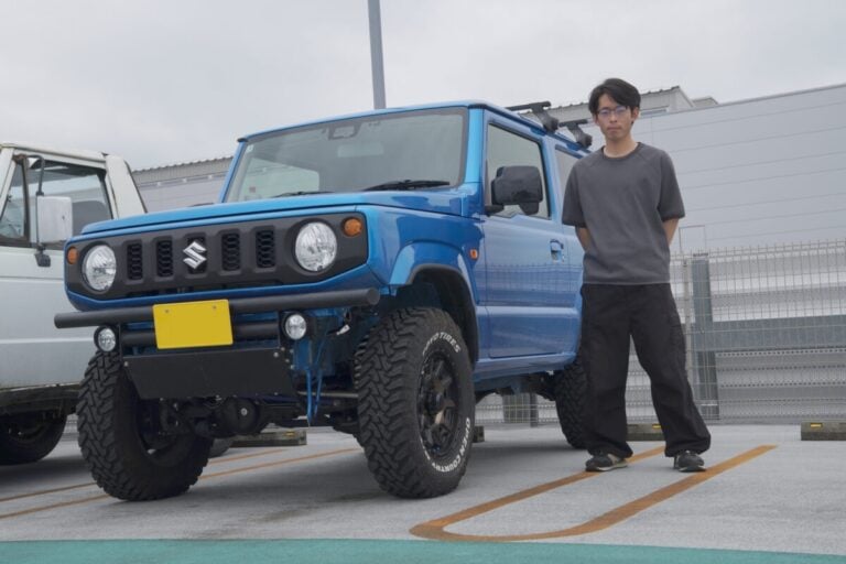 「YouTubeで林道を駆け上るジムニーを見て興味を持ちました。コンパクトながら本格的な4WD性能と、無骨でどこか愛嬌のあるデザインに一目惚れ。 フォレスターX-BREAKも候補にありましたが、「道を選ばず走れる頼もしさ」と「カスタムの自由度」に惹かれ、最終的にジムニーを選びました。また、青いジムニーというあまり人気のない色にも気に入ってます」。