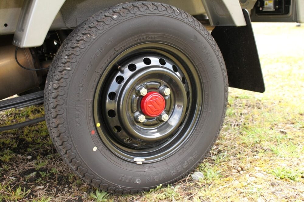 「足まわりはノーマルです。鉄ホイールの純正センターキャップを塗装したくらいですが、いい感じにアクセントになっています笑」
