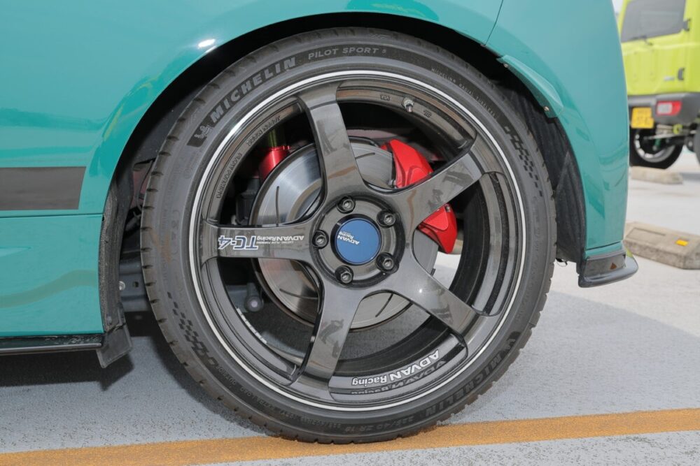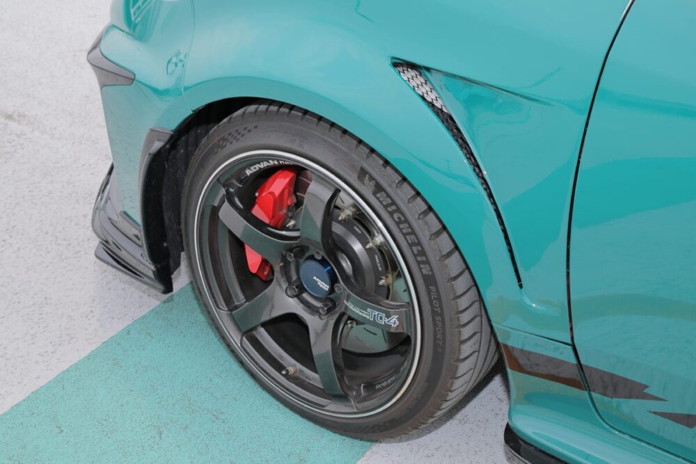 深みのあるグリーンが印象的なKPさんの車両。もともとのカラーはレッドだったところを、フルラッピングでがらりと雰囲気を変えている。