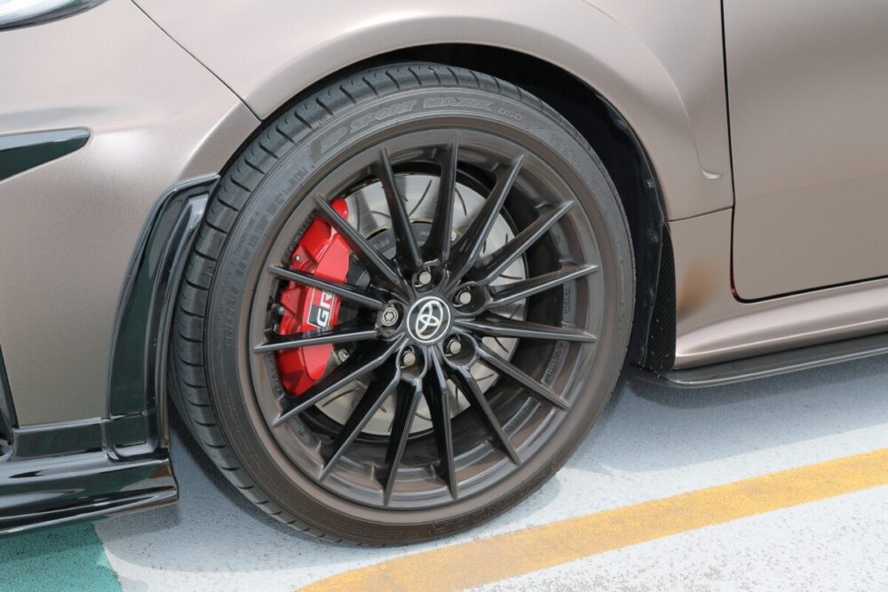 GRヤリスで唯一CVTが用意されているグレードのRS。CVTとはいえ走りに重点を置いたハンドリングになるようセッティングされているのはさすがGRというところです。カスタムした経緯は、GRMN※が発売されたから……。そこで、外装、内装をGRMN仕様にして、ダウンサス、ブレーキローターなども変えています。