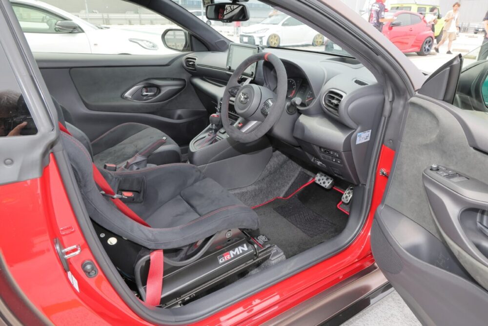 シート、ステアリングなど、内装もGRMN仕様に変更。シフトノブも変更し、CVTなのに一見マニュアルミッションの様!