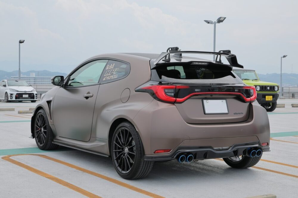 GRMN仕様にしています。テールはGRヤリスの後期テールに変更しています。ボンネットはカーボンボンネット。