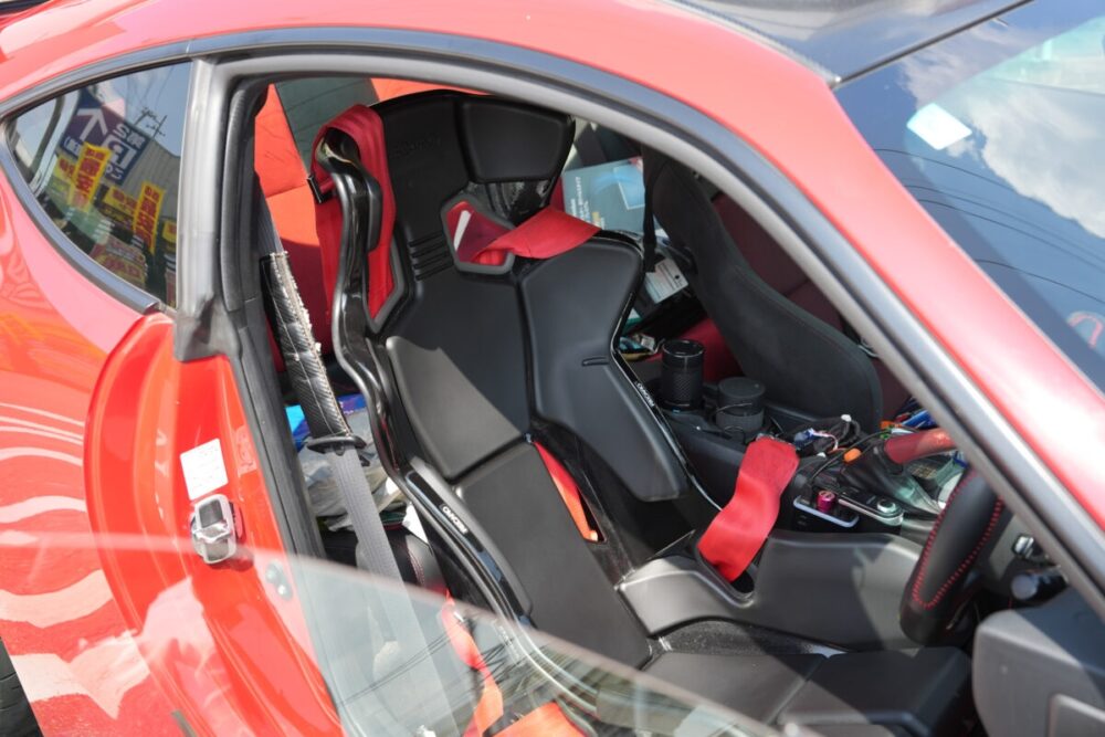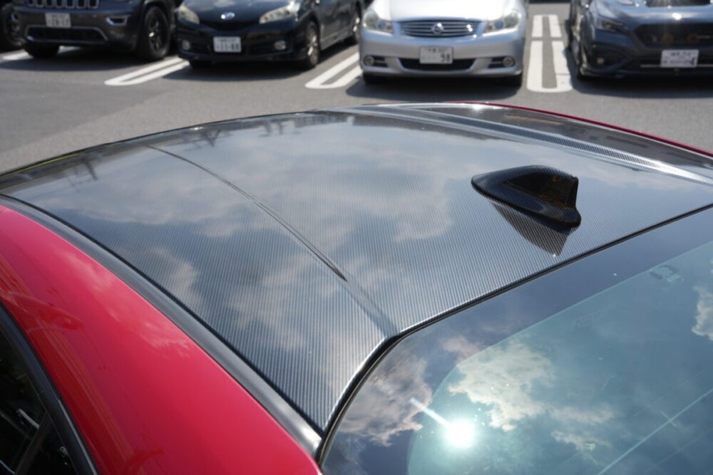 内装関係の記載はシートのみだが、運転者と助手席で違うシートをチョイスしている点が、同乗者への思いやりを感じさせる。また、ハンドルやシフトノブなど細やかな部分まで赤と黒(カーボン)で彩り、スタイリッシュなスペースになっている。
