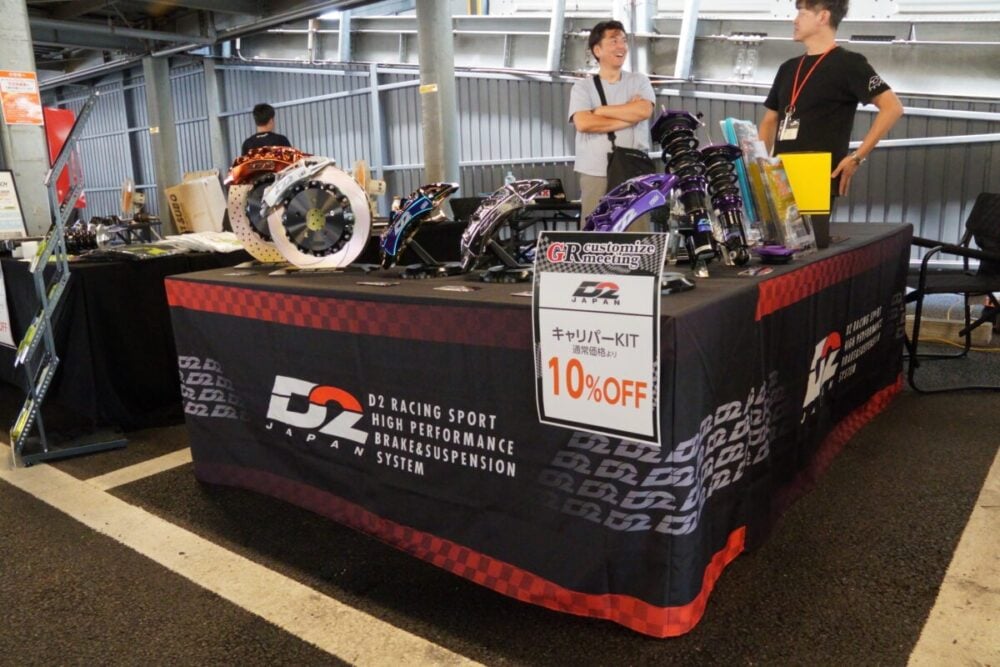 また、D2 JAPANといった足回りに強いブランドも来場。キャリパーやブレーキディスク、車高調整式サスペンションといった製品を展示。特に「走りの質感を高めたい」というユーザーにとっては、見逃せないブースとなっていたはずだ。