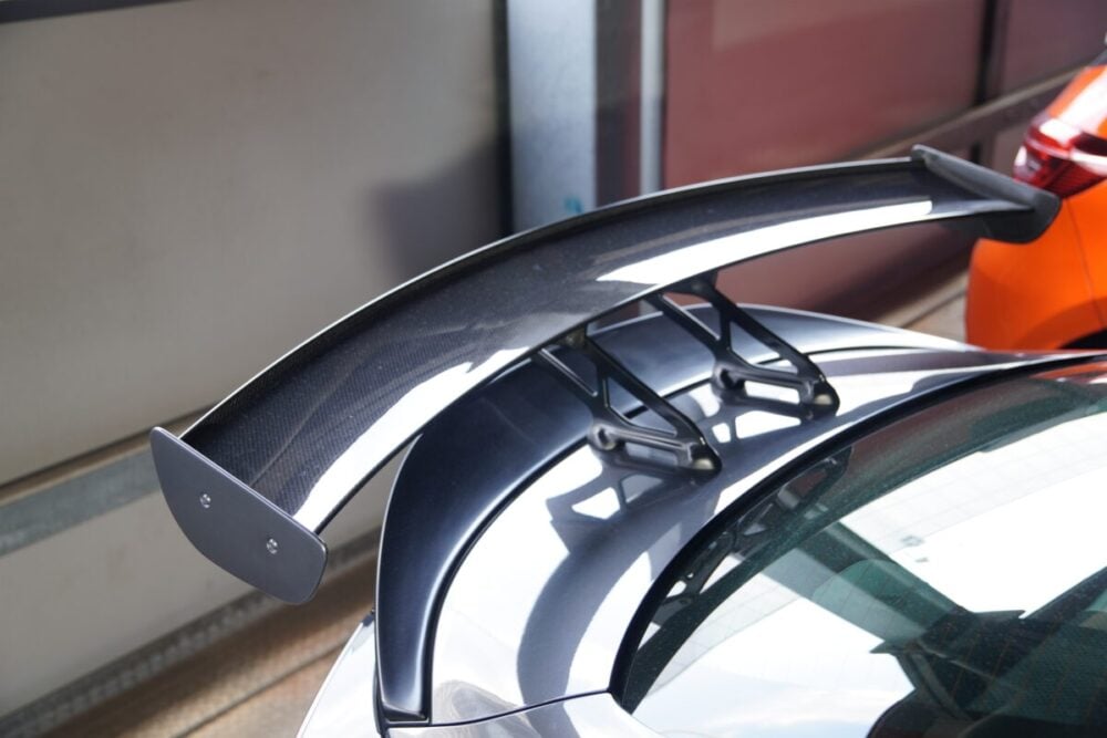「HKSのGTウイングですね。上司から『お前のクルマ、空飛ぶだろっ!!』って言われました笑」