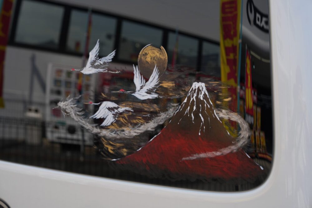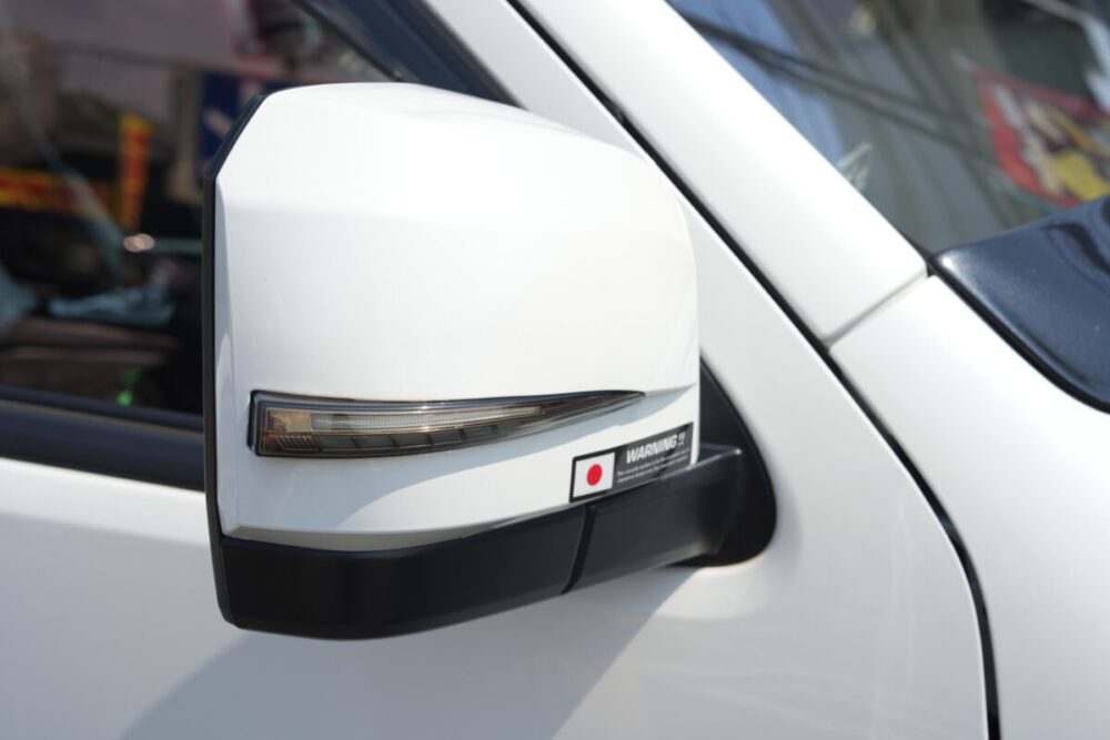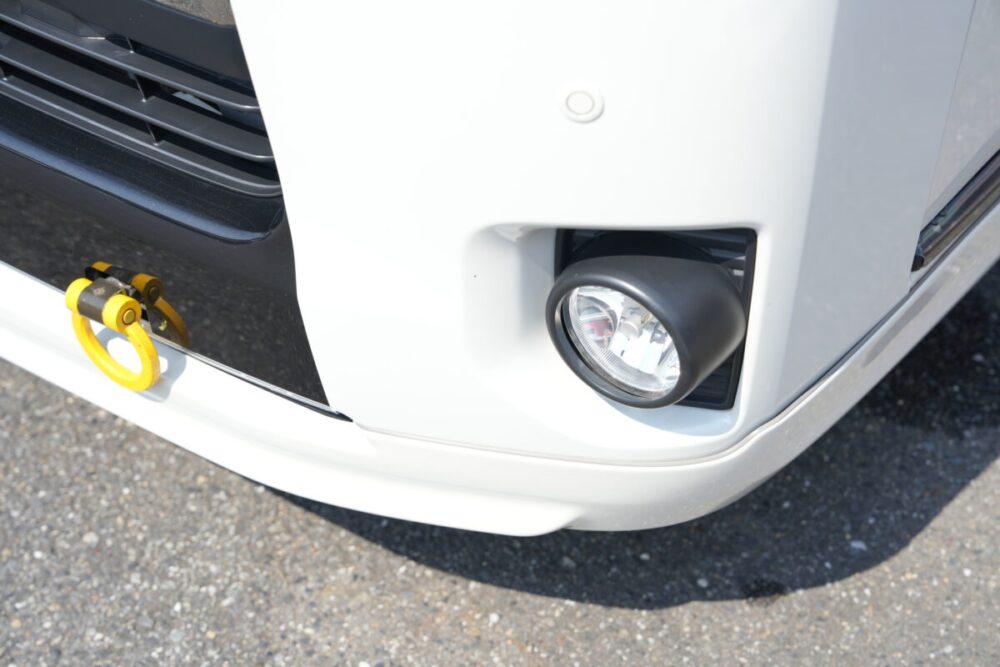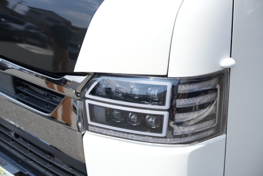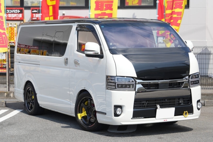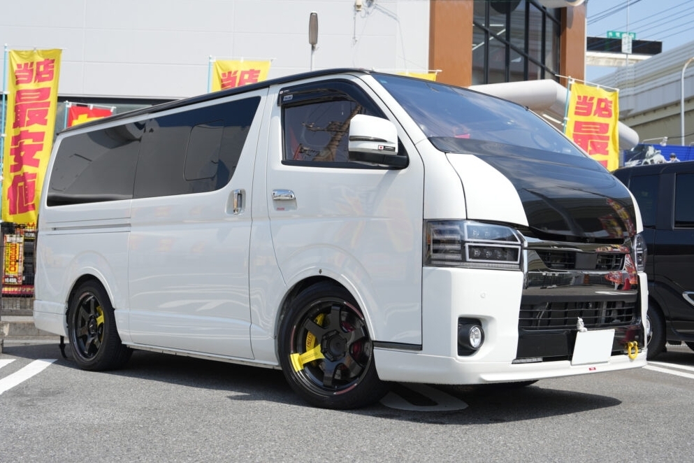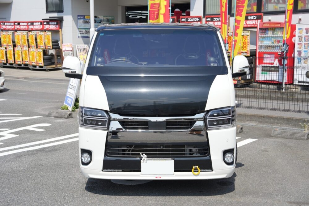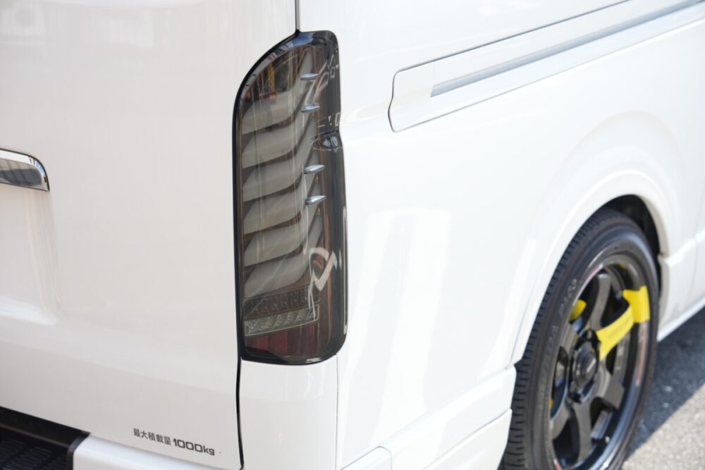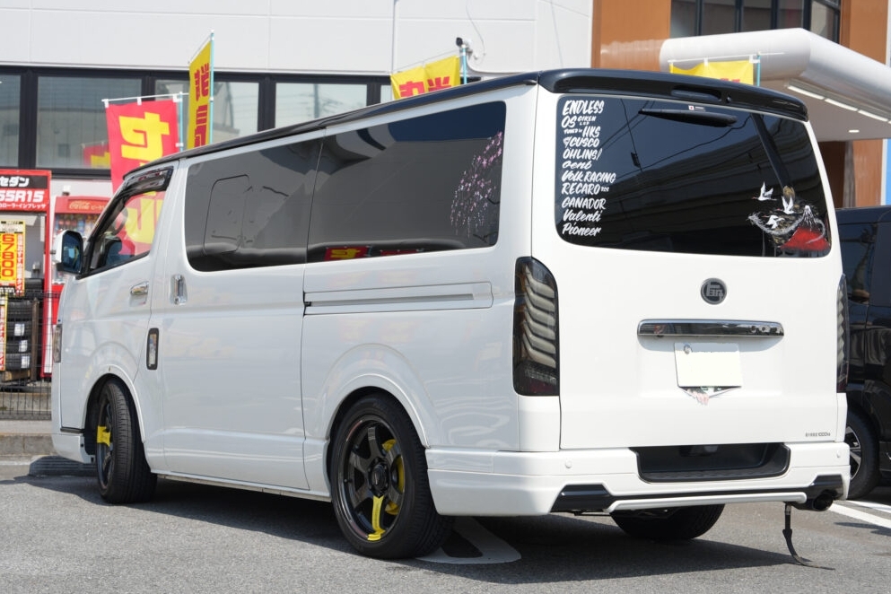 ルーフのブラックもハイエースの純正色としているところにこだわりを感じる。また、変更点には記載がないものの、細かな部分でドレスアップをしているオシャレな外観になっている。
