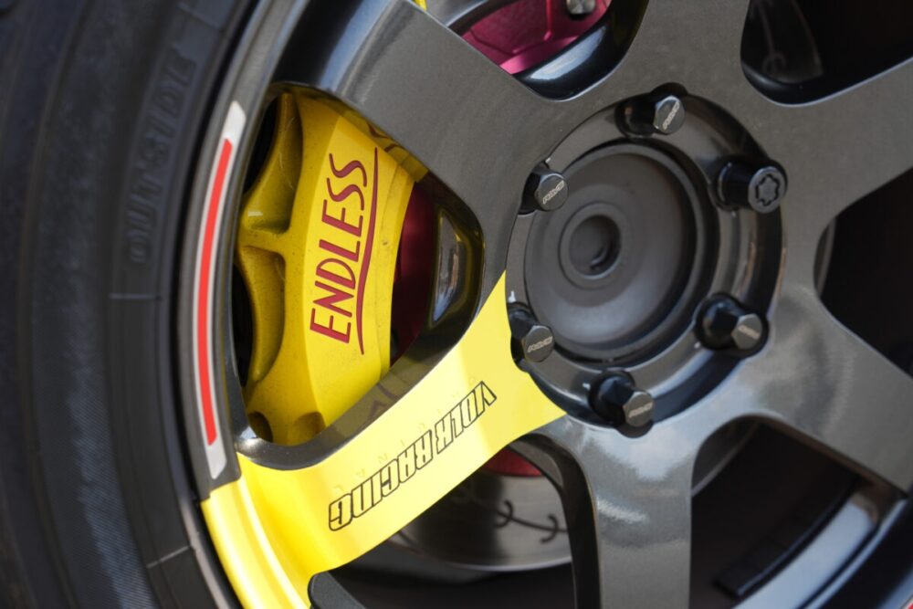 エンドレスのブレーキキャリパーはカラー、性能の両面においてポイントになるパーツだ。