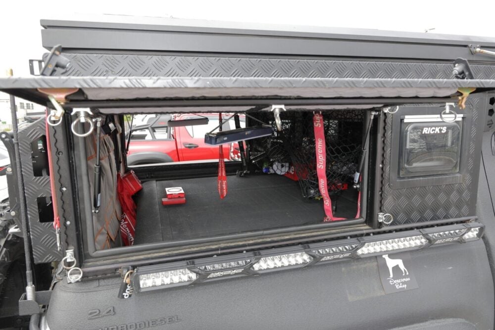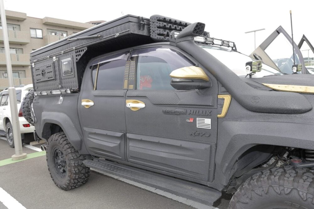 「すべて。ラプターライナー全塗装、アイアンバンパー、架装(荷台の上物)も全てオーダーメイド。全部カスタムは1人でやってる」