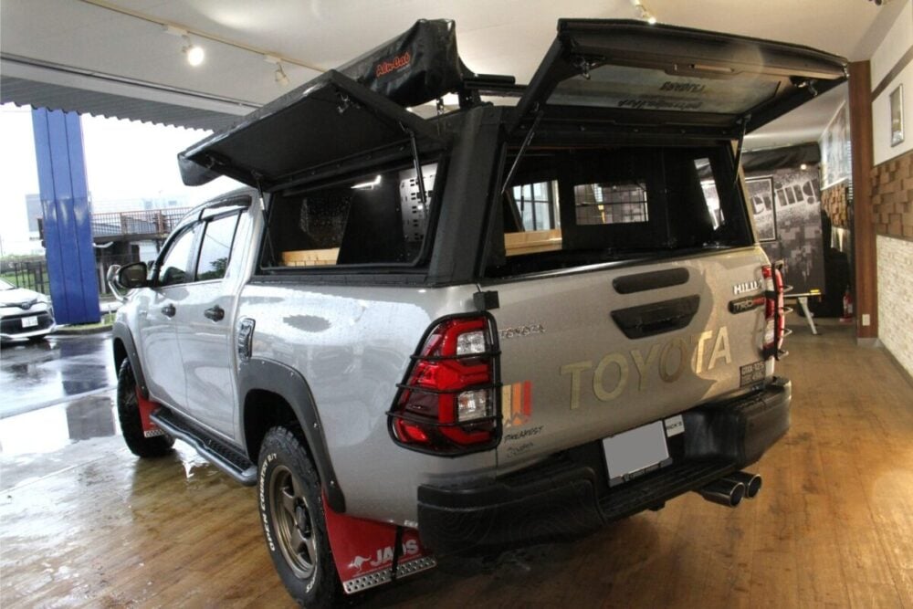 ルーフラックやルーフトップテント、サイドオーニングなど、アウトドア仕様のパーツを組み合わせたカスタムがとくに注目されています。