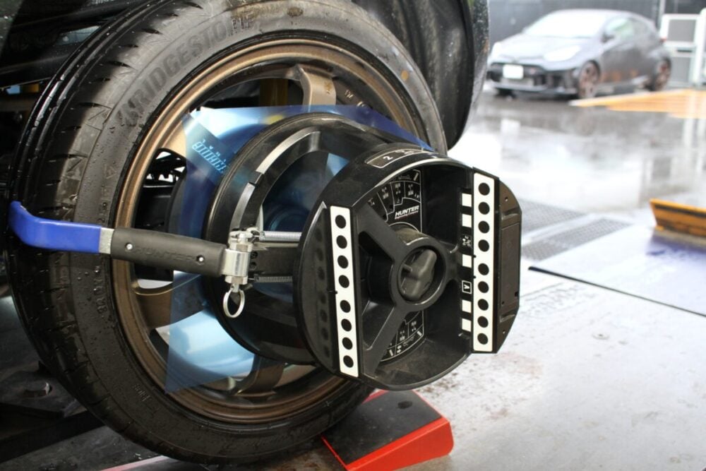 車高やホイールサイズ、アライメントによってベストの位置が変わるため、クルマ1台1台に合わせてセットアップしています。