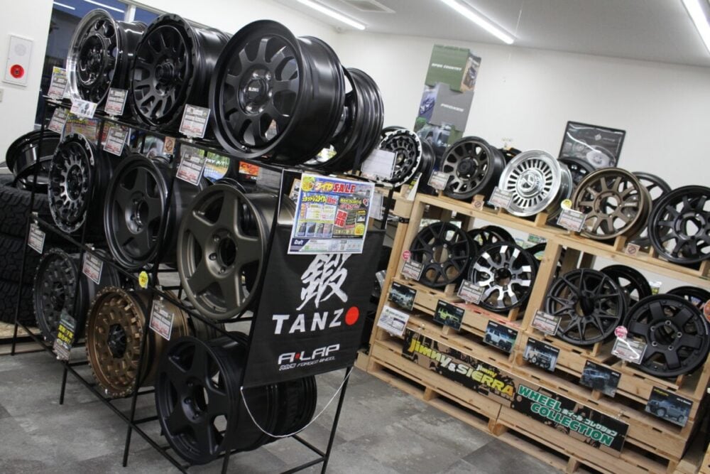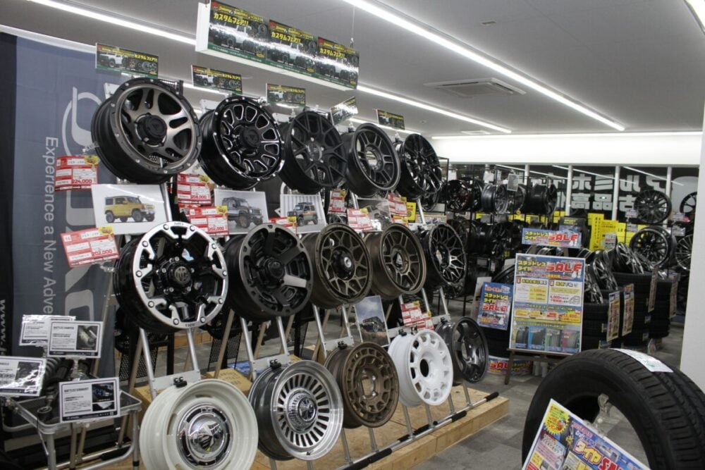 ローダウンからツライチカスタム、リフトアップまでトータルカスタムを得意としており、タイヤ1本の交換からホイールセット、車高調整、アライメントまでワンストップで対応しています。