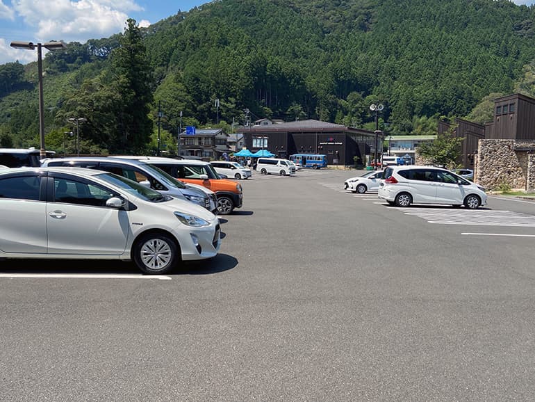 「モンベルアウトドアヴィレッジ本山」の駐車場はとても広く、100台くらいは停められます。