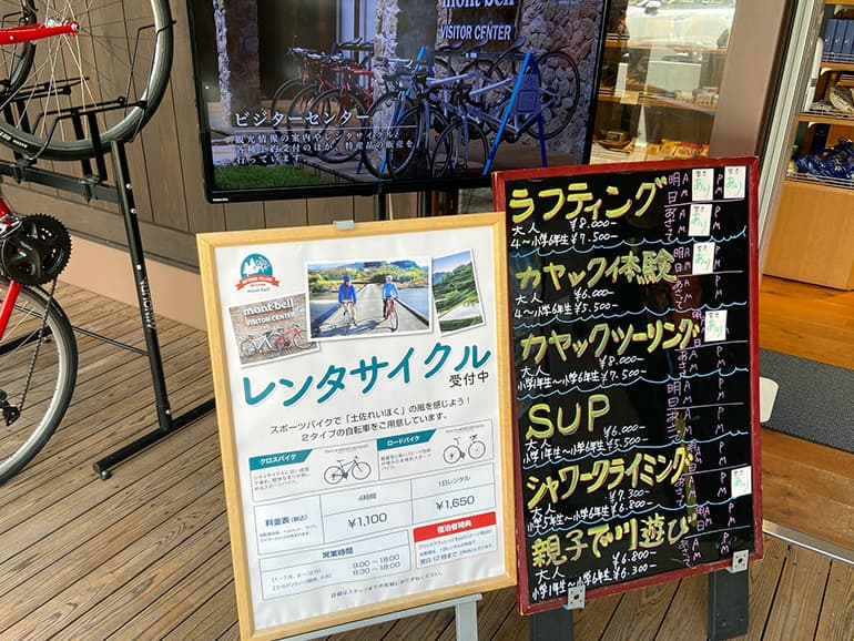 宿泊やラフティングなどの体験の予約受けや、レンタサイクル受付をしてくれます。