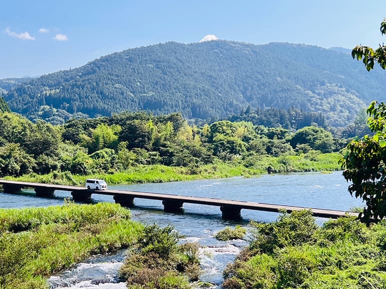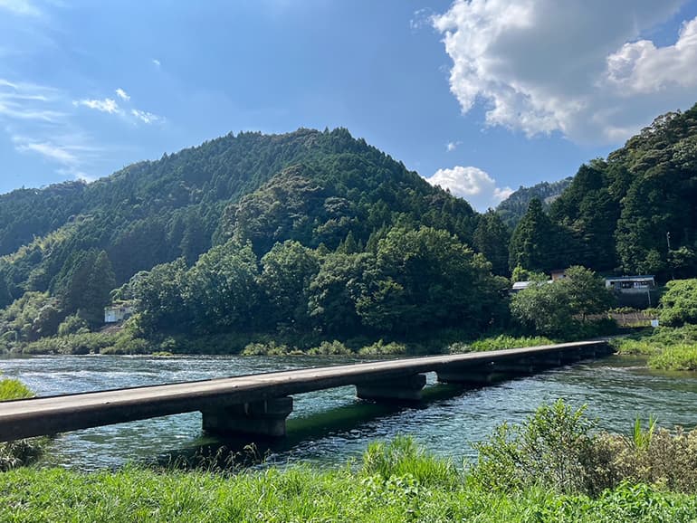 「モンベルアウトドアヴィレッジ本山」から1km離れたところにある沈下橋です。