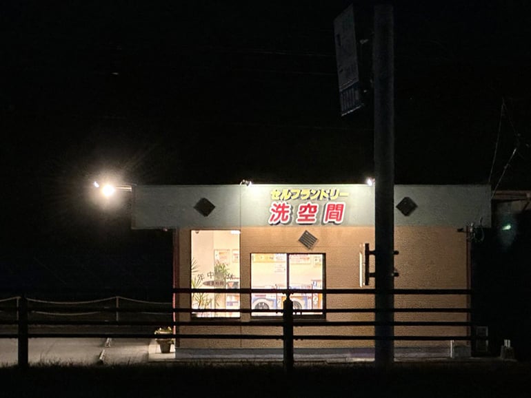 道路を挟んだ向かい側にコインランドリーがあるので、旅の途中でも気軽に洗濯ができます。