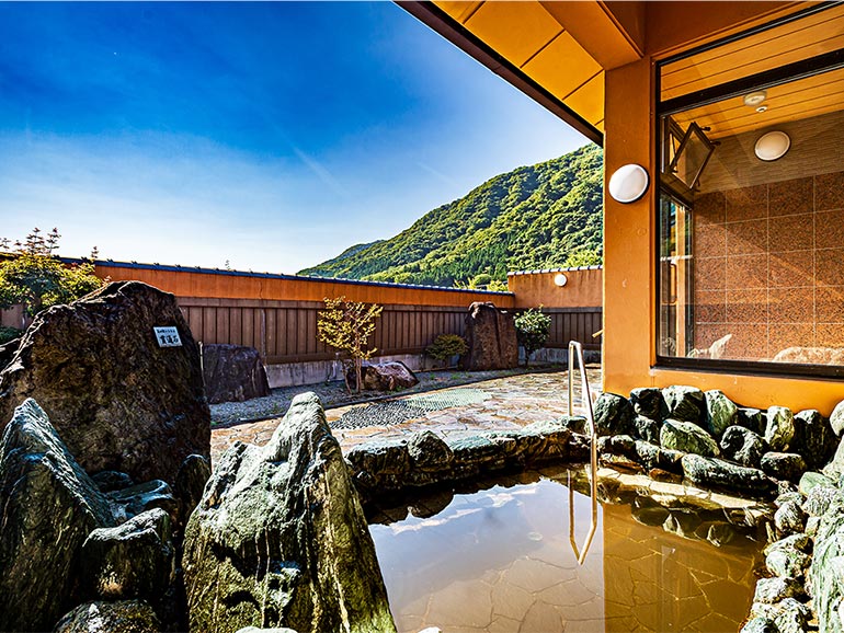 弱アルカリ性の湯は肌にやさしく、星空を眺めながらの露天風呂は格別です。
