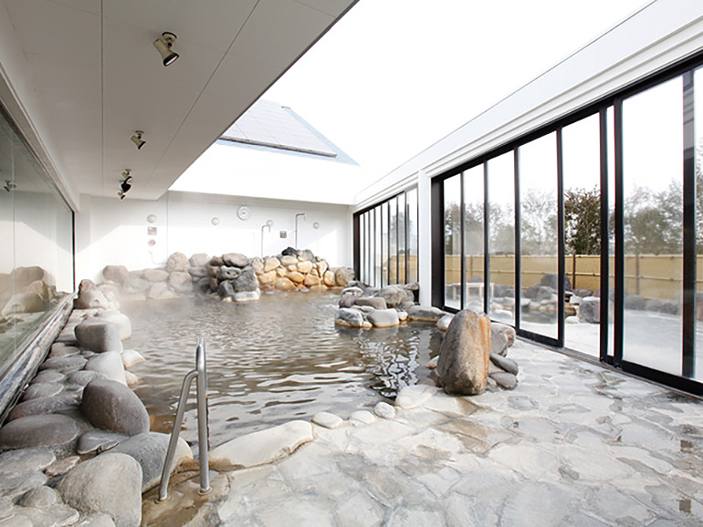 入浴施設:富士見温泉 見晴らしの湯ふれあい館。大浴場・露天風呂・サウナあり、赤城山や関東平野を一望。
