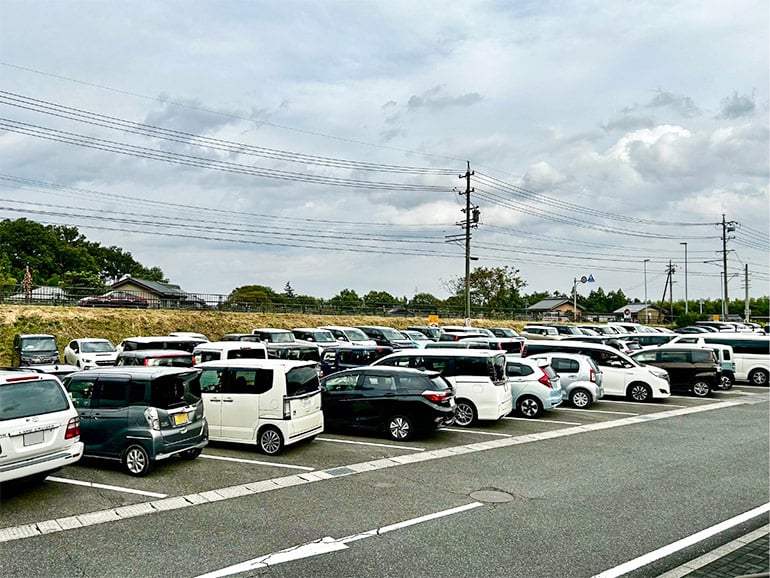 土曜日の駐車場は満車の状態で、停めるまでに15分ほど待ちました。