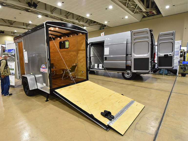 大型の荷物を運ぶトランスポーター機能を持ちながら、さまざまな室内オプションによってキャンピングトレーラーのようにも使えるモデルです。