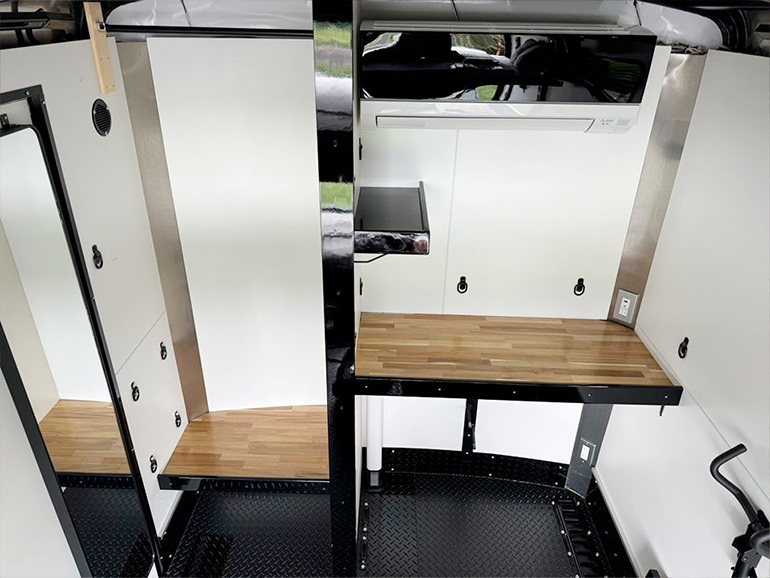 また、キャンピングカーとして使いたい場合、さまざまなオプションで室内をカスタマイズできます。