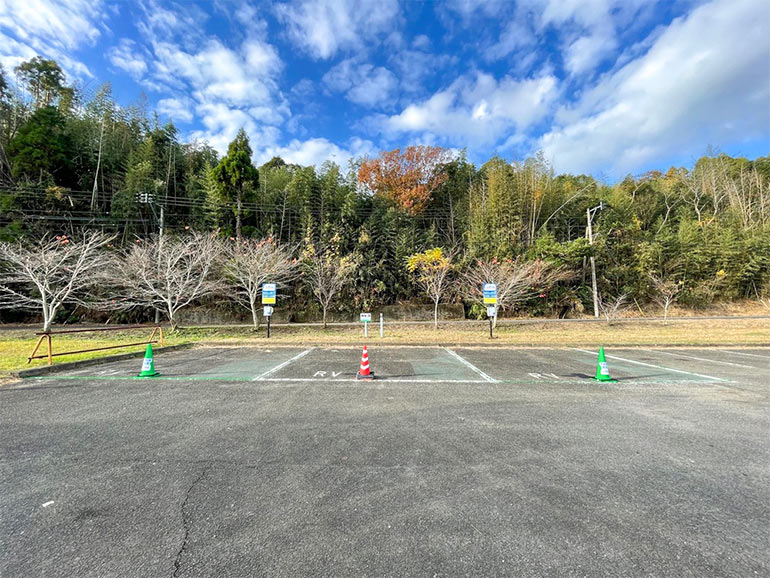 高鍋温泉めいりんの湯に隣接する「めいりん公園」駐車場内にあるRVパークsmart。