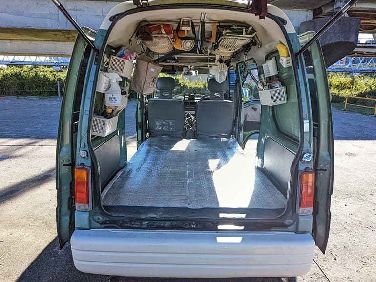 1997年製の古い車で、パワーウインドもなく、エアコンも効きませんでしたが、荷室が広くてフラットだったので、車中泊にはとても適していました。
