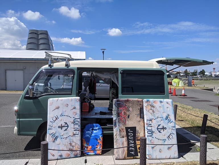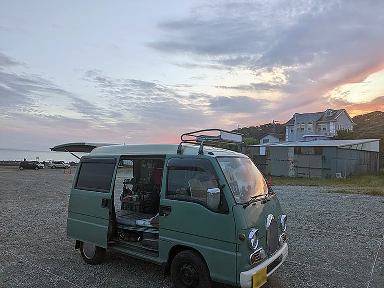 休日にはお気に入りの軽バンで、伊豆や箱根、房総などへ気ままな車中泊旅に出かけていました。