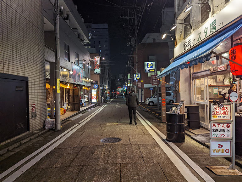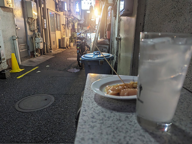 昭和レトロな雰囲気で、立ち飲み屋がずらりと並びます。