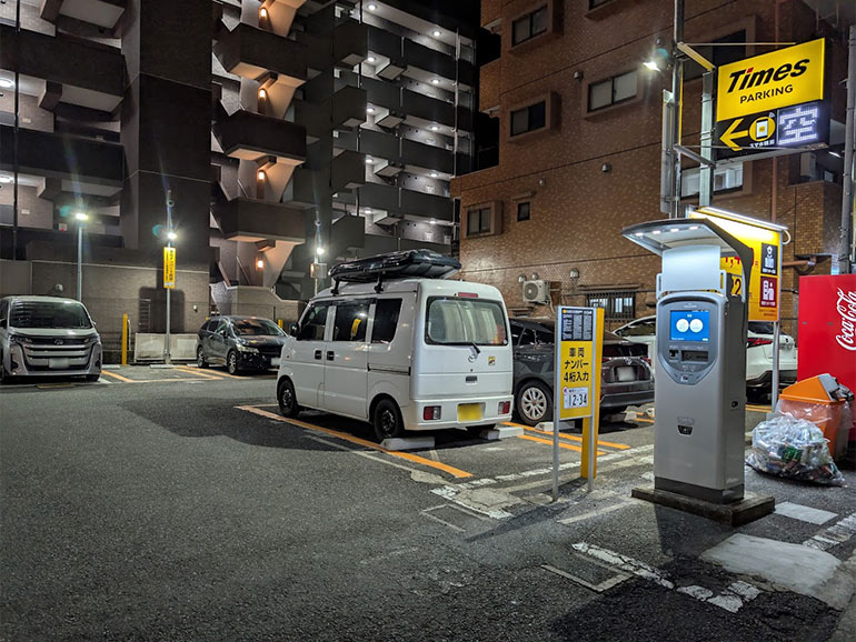 周辺にはコインパーキングが点在していて、満車も多いので空いている所に入る方式。