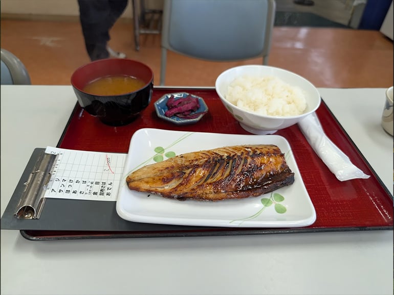 この日は朝ご飯だったので控えめに「サバの干物定食」、単品で「きんきの干物」を注文。