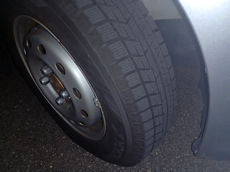 スタッドレスタイヤは履いていたものの、なんと8年経過。