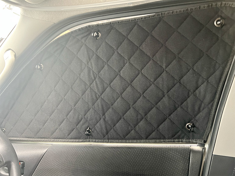 冬の車中泊でまず一番に用意したいのが、窓を覆うサンシェードです。