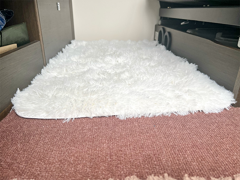 ・重ね敷き: 毛足の長いキッチンマット