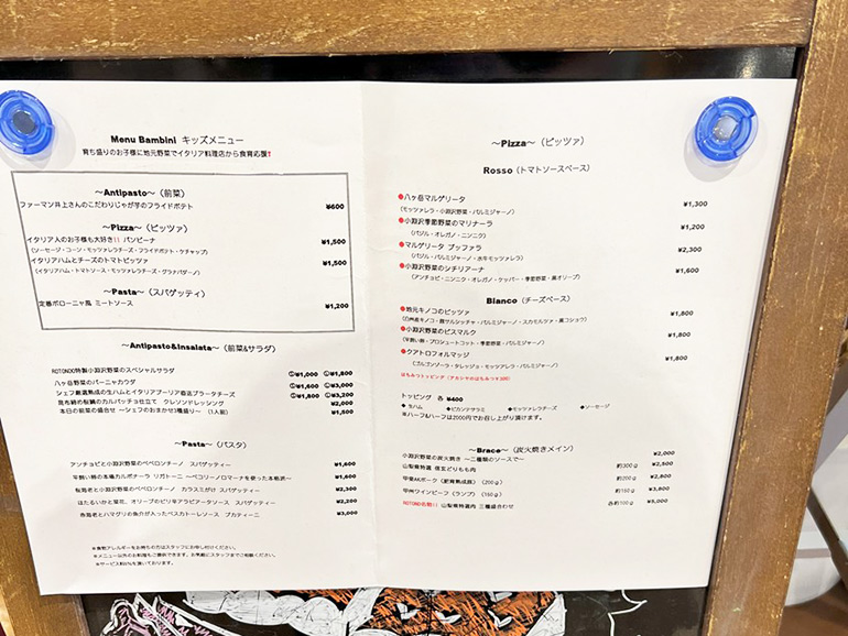 特に「八ヶ岳マルゲリータピッツァ」(約1,600円)は、新鮮な山梨産のモッツァレラチーズと季節の野菜を使用し、400℃を超える石窯でふっくら香ばしく焼き上げられています。