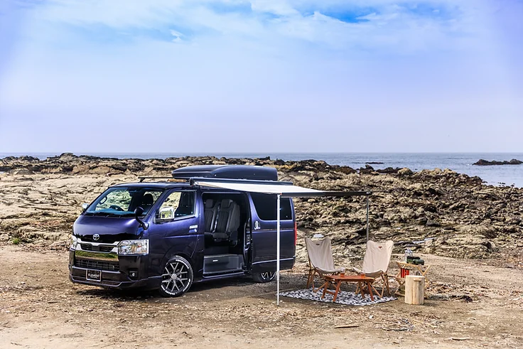 高い汎用性と耐久性、優れた走行性能から、仕事の現場だけでなくレジャーにも最適とあって多くのユーザーに支持されているハイエース。一般的な乗用車は10万kmが寿命と捉えられているが、ハイエースは100万km以上走行できるポテンシャルを持っている。ALFLEXはこの質実剛健な作りのハイエースをベースにキャンピングカーに仕立てた、バンコンバージョンのキャンピングカーを得意とする。