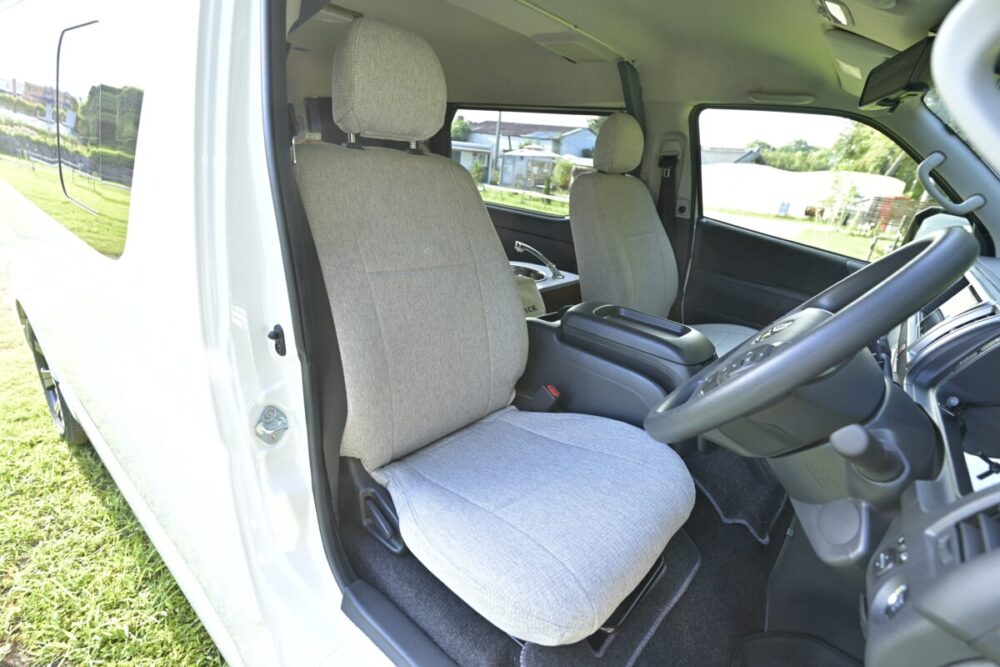 取り回しがちょうどいいサイズでありながら、しっかりとした室内空間を持つワイドボディ・ミドルルーフのハイエースをベースにしたのが「ORCA(オルカ)」だ。8ナンバー登録のキャンピングカーだが、ハイエースワゴンGLがベースで、乗車定員は7名、就寝定員は大人2名となっている。広い室内空間は車中泊はもちろん、移動時もゆったりとくつろぐことができる。そしてORCA最大の特徴はベッドのリクライニング機構を備えたこと。これにより荷室を確保することが出来たのだ。
