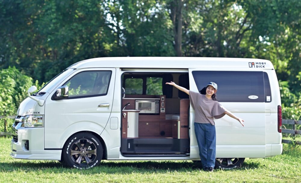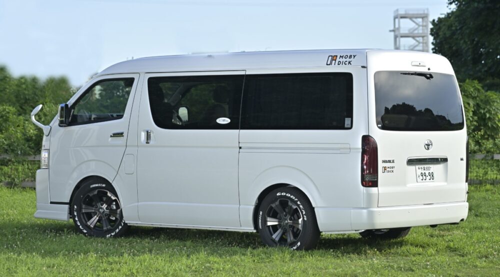 MOBY DICK(モビーディック)はハイエース専門店FLEXが提案する普段使いができるキャンピングカー。運転のしやすさは普通のミニバンと大差なく、内装に関しても普段使いしやすい仕様なのが特徴。平日は子供の送り迎えやスーパーの買い物に。休日は家族みんなでキャンプや車中泊旅。シートを倒すとあらわれる大きなベッドに、食事に便利なシンクつきキッチン。不要なものは省き、必要なものだけを詰め込んだ 「ちょうどいい」クルマ。それがMOBY DICKのキャンピングカーなのだ。
