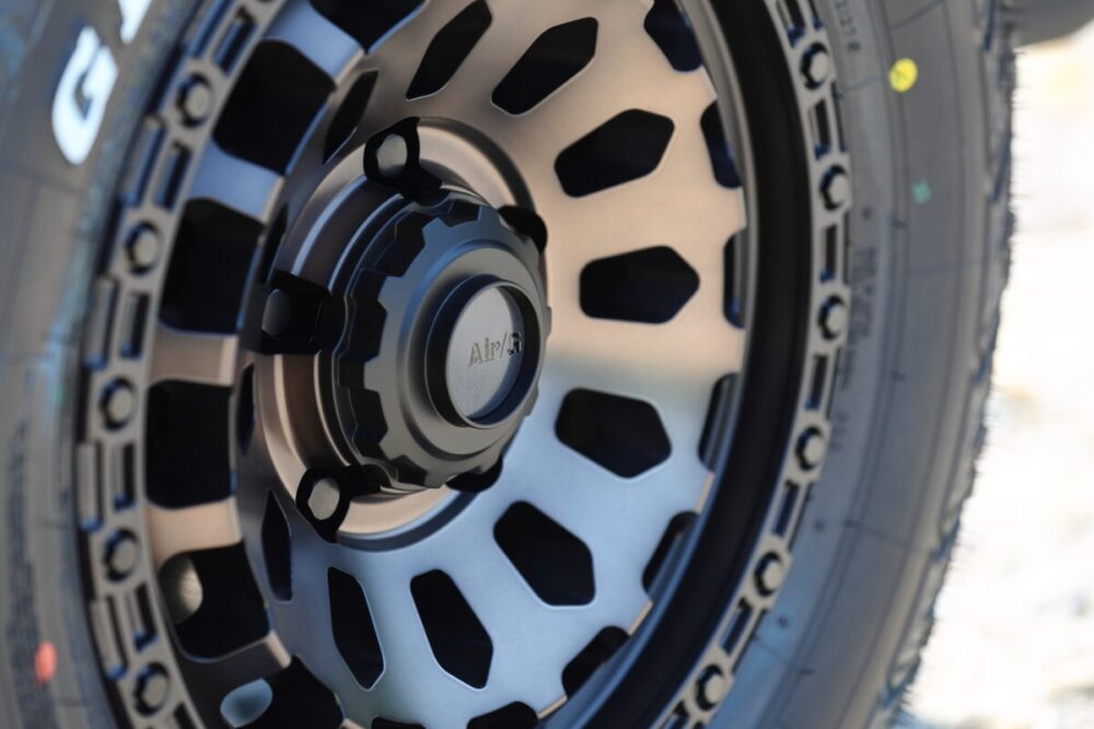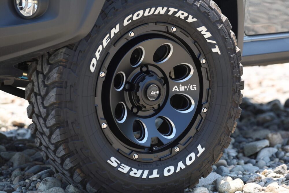 ジムニー・シエラに装着されているのは”Air/G Massive(エアージー マッシヴ)”。こちらも”Air/G VULCAN(エアージー ヴァルカン)”と同じくジムニー・ノマド/シエラに対応した16インチサイズが2025年に発売されたばかりのモデル。